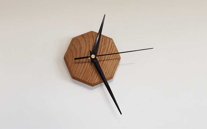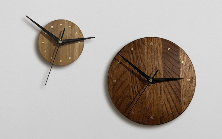The piece of decor I've built most is probably clocks. After making various designs, I wanted to create a very simple, stylish clock without numbers, so brass dots on plain wood felt like a smart choice that works for various sizes and colors of wood.