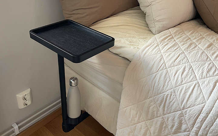 Before I built these, we had some old IKEA tables by the bed. They always felt out of place and in the way. To solve both problems, I made these floating tables with integrated wireless charging.