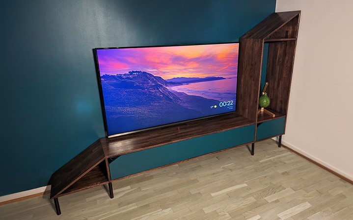 When my sister asked me to design and build a slim and simple TV bench for them, I took it as an opportunity to try some new designs for the legs, as most TV benches I've designed in the past were meant for wall mounting.