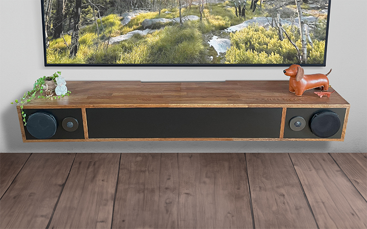 I've always liked the notion of integrating functionality within the furniture piece itself, so built in speakers for a TV bench felt like a logical step in that direction. I took inspiration from the speakers themselves, combining it with the general style direction of our home.